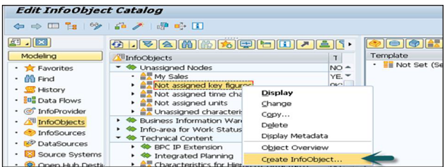 转到未分配的关键指标→右键单击→创建InfoObject。