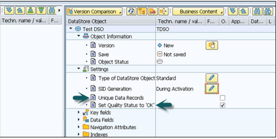 数据存储对象的类型→用于选择DSO类型。 默认情况下,它将采用标准DSO。