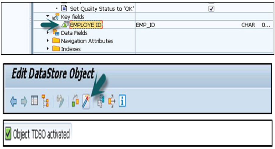 以下是DSO中的关键字段InfoObject。 此DSO结构完成后,您可以激活该DSO。