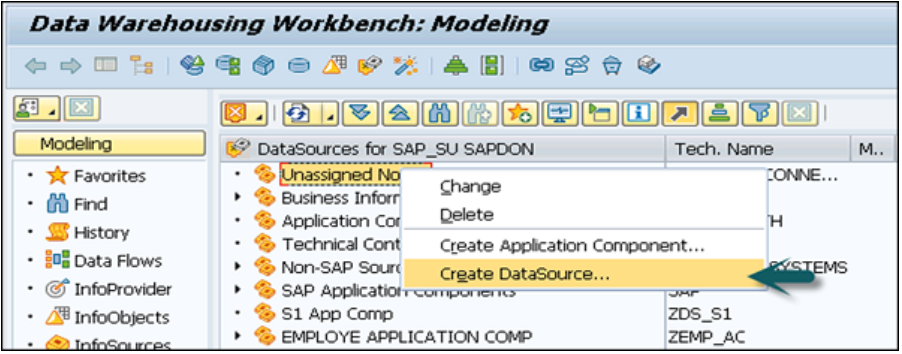 在可以从文件源系统传输数据之前,元数据必须以数据源的形式在BI中可用。 转到建模选项卡→数据源。