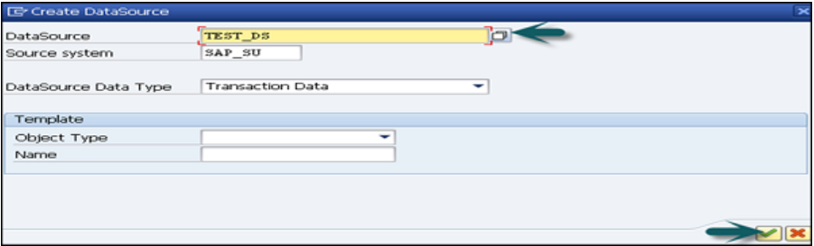 输入数据源的技术名称,数据源的类型,然后单击“传输”。