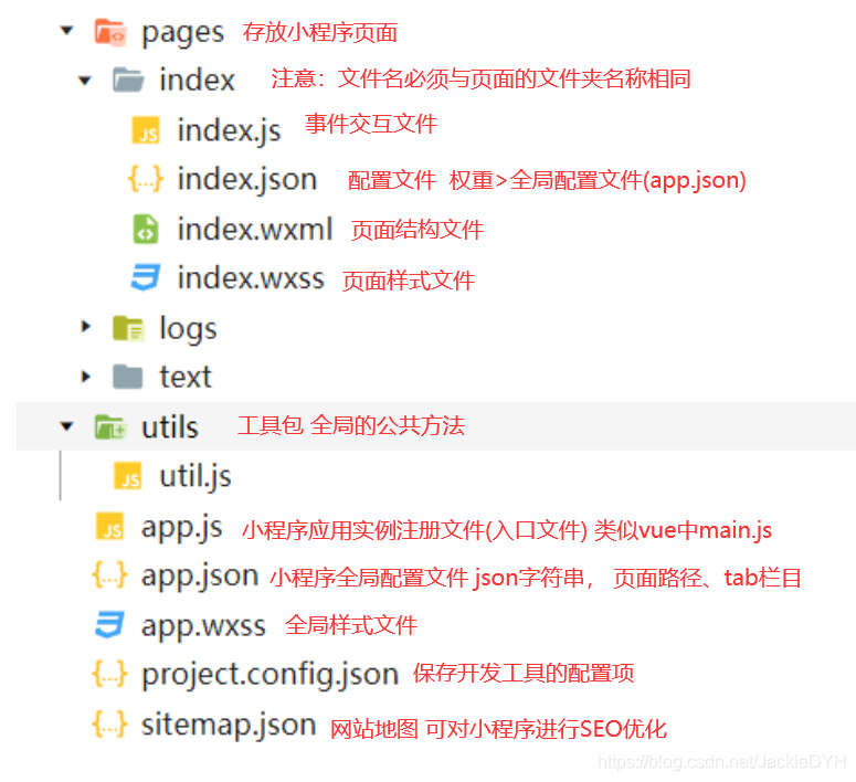 app.json、poject.config.js、sitemap.json、至少得有一个页面( js、json、wxml、wxss )