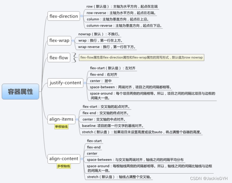 align-content属性定义了多根轴线的对齐方式。如果项目只有一根轴线,该属性不起作用。