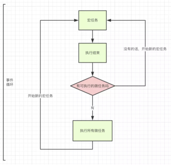 宏任务 > 所有微任务 > 宏任务,如下图所示: