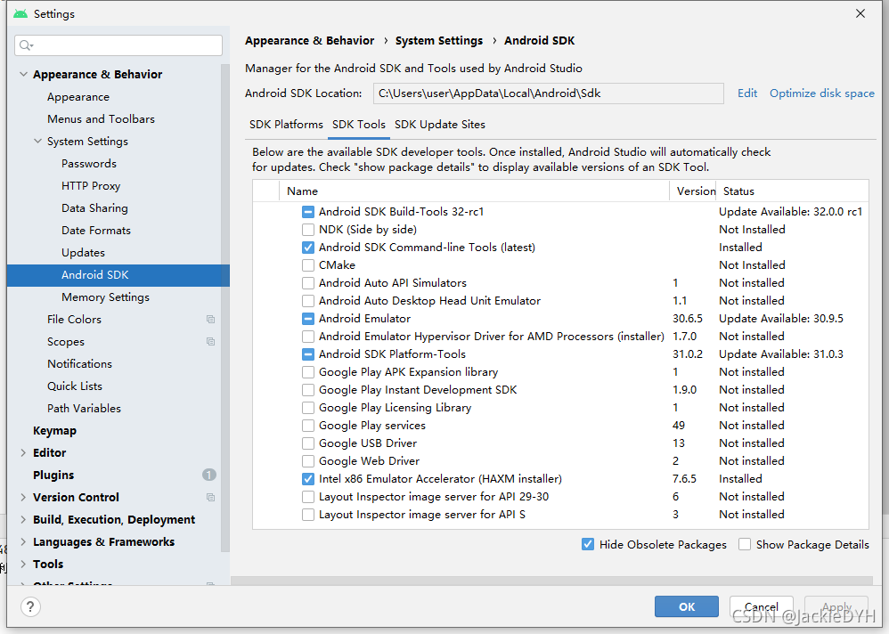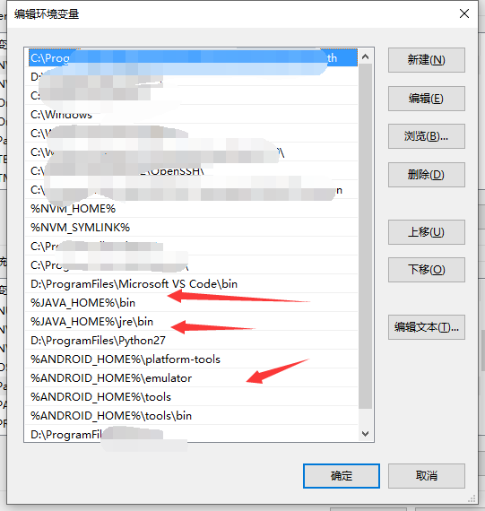尝试着把其它的环境变量添加,这里相应的工具也需要在android studio内安装