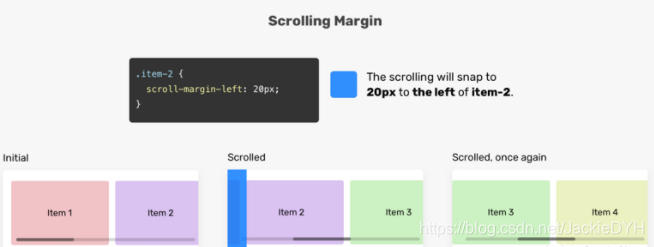 scroll-margin设置滚动容器的子项之间的间距。在向元素添加边距时,滚动将根据边距对齐。参见下图: