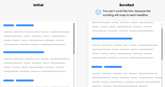 使用 CSS scroll snap时,请确保可访问性。这是滚动对齐的一种不好用法,它阻止用户自由滚动内容以读取内容。