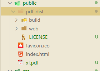 解压下载的zip文件,将解压后的整个目录(pdf-dist)拷贝到项目的 public 目录下(放在 public 目录下的文件不会被 webpack 处理)