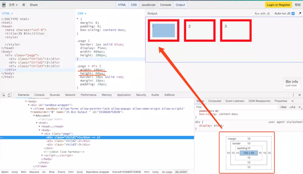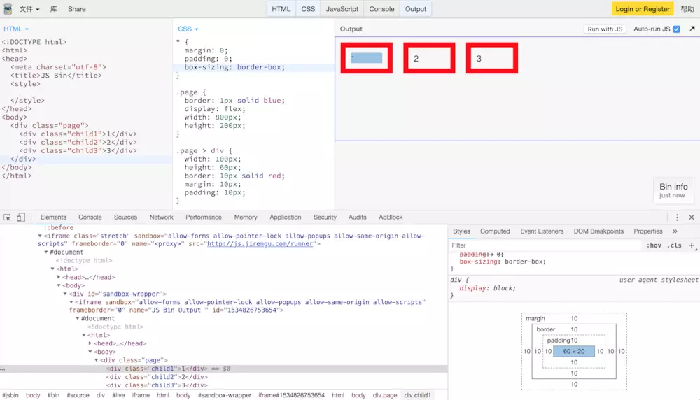 - 盒模型总content区宽度为60px,高度为20px,padding和border占据content区原本的空间,padding分别占据了10px,border分别占据了10px。
