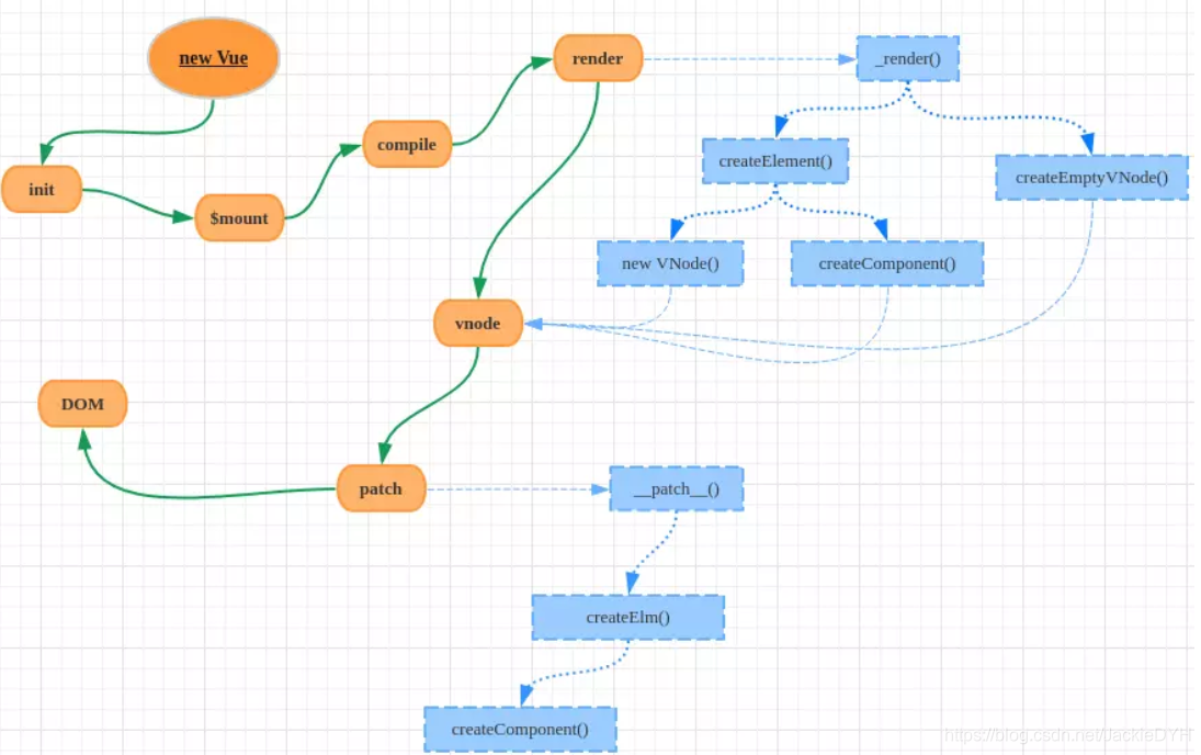 - 完成VNode实例化后,这时候Vue调用原型上的_update函数把VNode渲染成真实DOM,这个过程又是通过调用patch函数完成的(这就是patch阶段了)