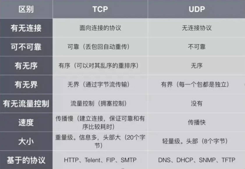 1、TCP面向连接(如打电话要先拨号建立连接);UDP是无连接的,即发送数据之前不需要建立连接