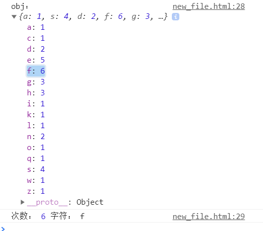 console.log('次数:',maxNum,'字符:',maxDocument);