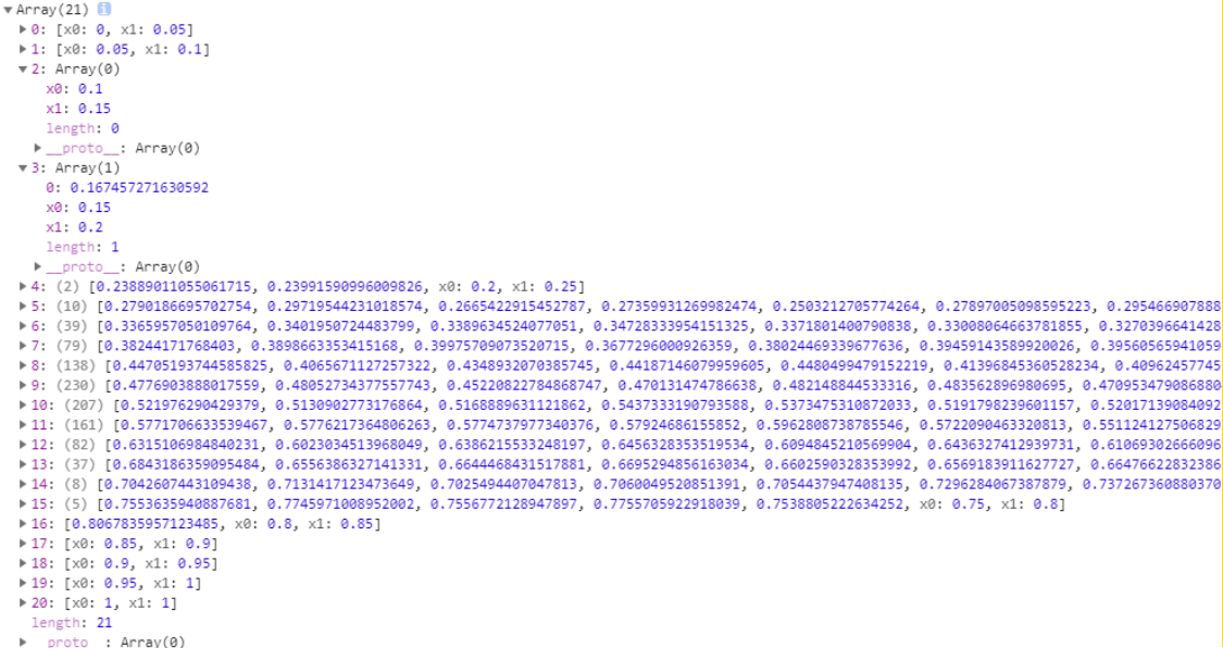 x0、x1:起始及终止的x坐标,length:出现的频数,数组里其他的即为在此频段的数据。