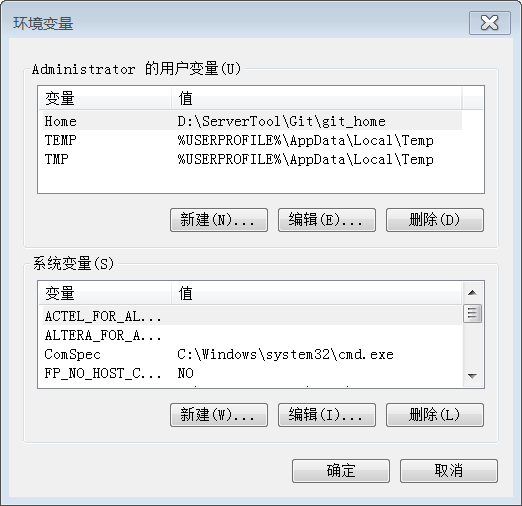 在用户变量里找一下有没有“Home”变量,如果有就编辑这个变量,在尾部追加一个你希望更改到的新文件夹的地址(追加时在前面要加一个英文分号)。如果没有,就新建一个“Home”变量,如上图我保存Git用户级别变量的位置是 D:\ServerTool\Git\git_home 。