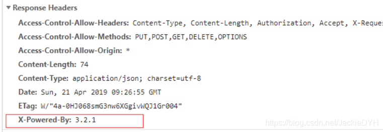 X-Powered-By: 3.2.1 : 这个查了半天没找到一个合理的解释,出于安全考虑一般会隐藏,不过使用express会自动暴露,于是就手动修改: