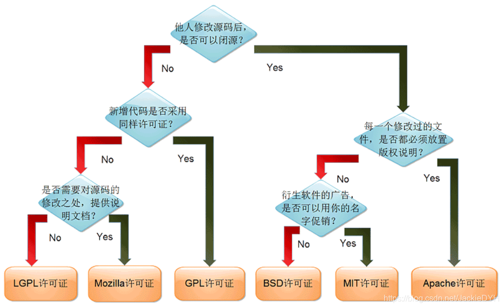 世界上的开源许可证,大概有上百种。很少有人搞得清楚它们的区别。即使在最流行的六种----GPL、BSD、MIT、Mozilla、Apache和LGPL----之中做选择,也很复杂。
