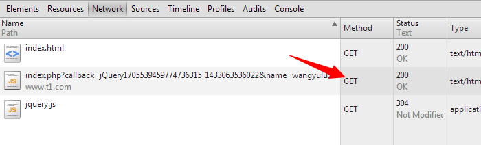 看下运行结果,即使设置传送方式为 post,Jquery也会自动转为 get,难道Jsonp真的不支持 post 方式提交吗,继续折腾...
