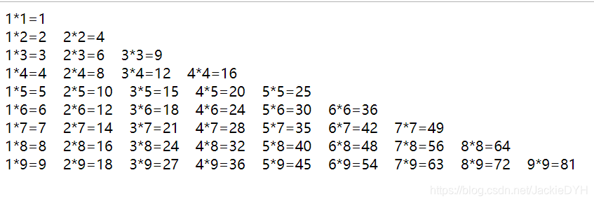 js两层for循环实现九九乘法表