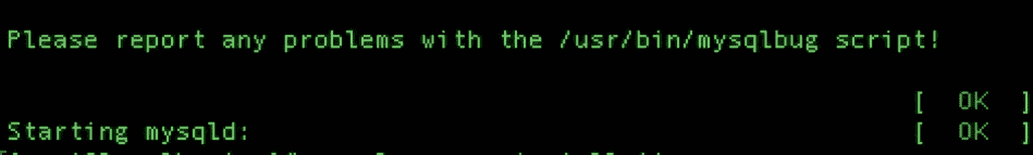 2. 启动 MySQL 数据库。当页面显示 Starting mysqld [OK] ,表示 MySQL 已启动。