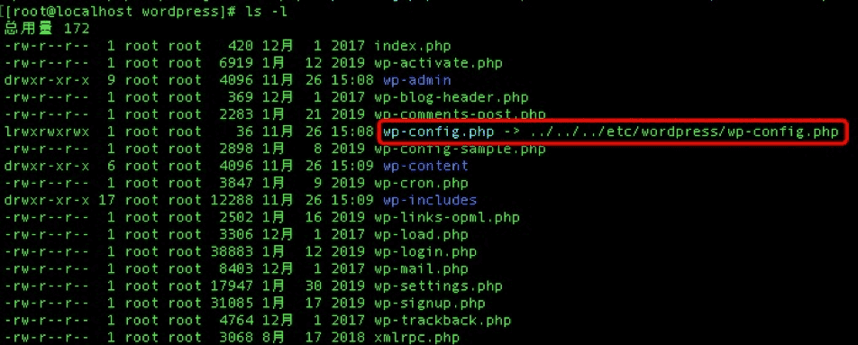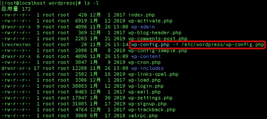 ln -snf /etc/wordpress/wp-config.php wp-config.php