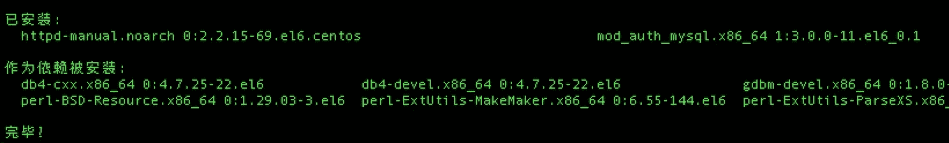 yum -y install httpd-manual mod_ssl mod_perl mod_auth_mysql