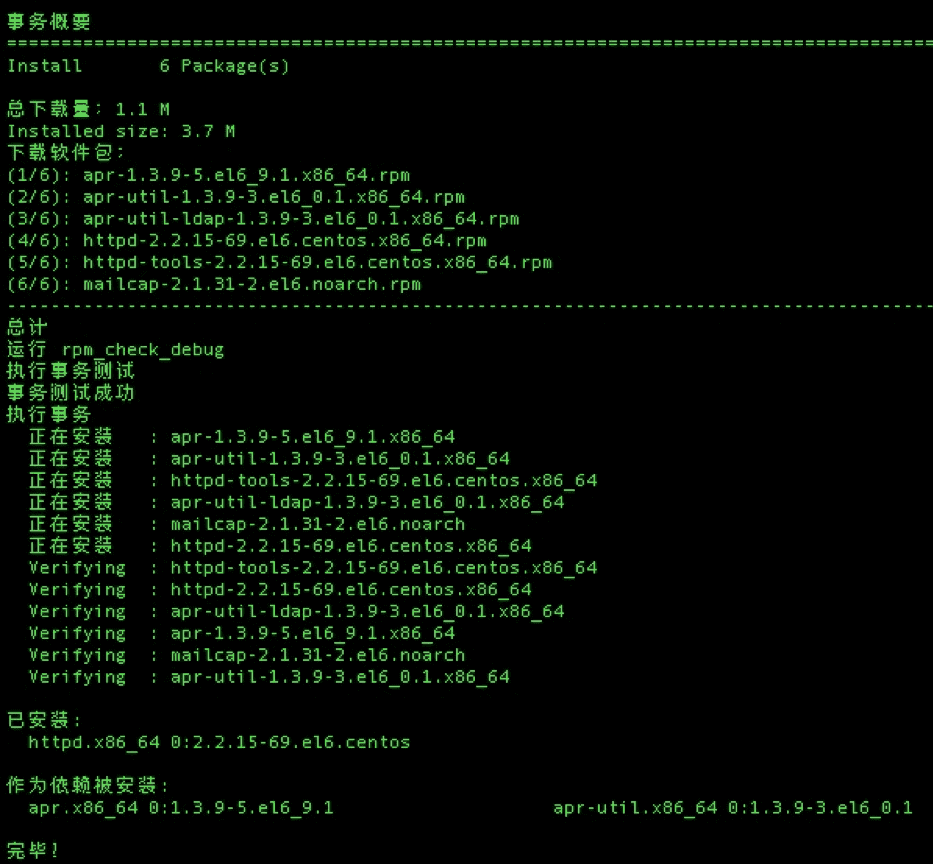 2. 登录到 ECS 实例后,执行如下命令,下载并安装 Apache HTTP 服务。