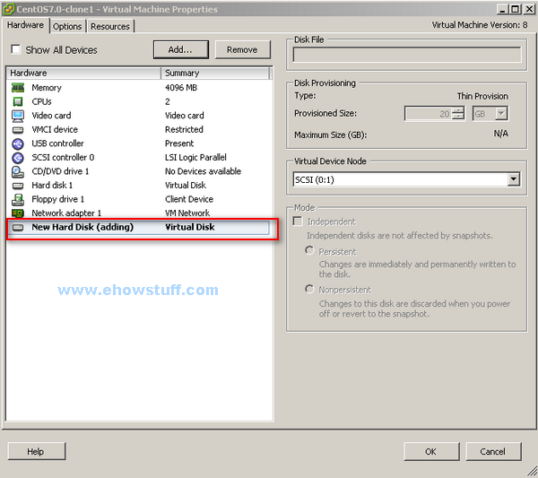 -  在ESXi或者vCenter中添加一块新的20G硬盘: