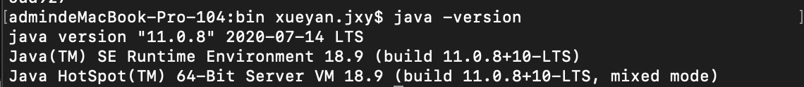 在文件中配置好java环境,验证java是否安装成功,终端输入java -version
