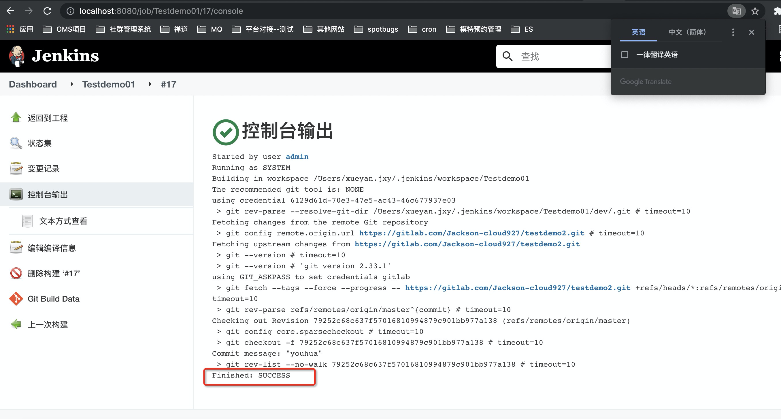 进入刚才创建的任务,点击立即构建,查看控制台输出