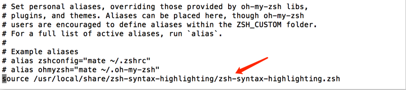 安装成功之后,编辑vim ~/.zshrc文件,在最后一行增加下面配置: