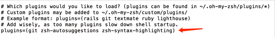 然后编辑vim ~/.zshrc文件,找到plugins配置,增加zsh-autosuggestions插件