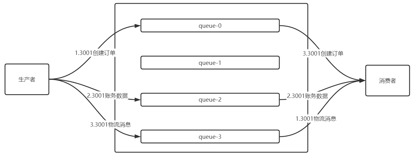 分区有序消息:与Kafka中的分区类似,把一个Topic消息分为多个分区“保存”和消费,在一个分区内的消息就是传统的队列,遵循FIFO(先进先出)原则。