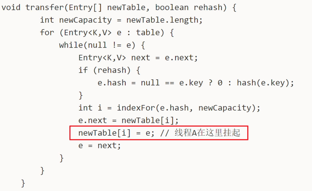 JDK 1.7 HashMap 上的链表结构使用的头插法,并发情况会导致生成环形链表。这样 HashMap 轮循时会在环形链表上陷入死循环。