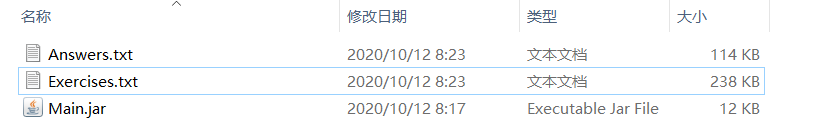 结果:确实生成了习题(Exercises.txt)和答案文件(Answers.txt)。