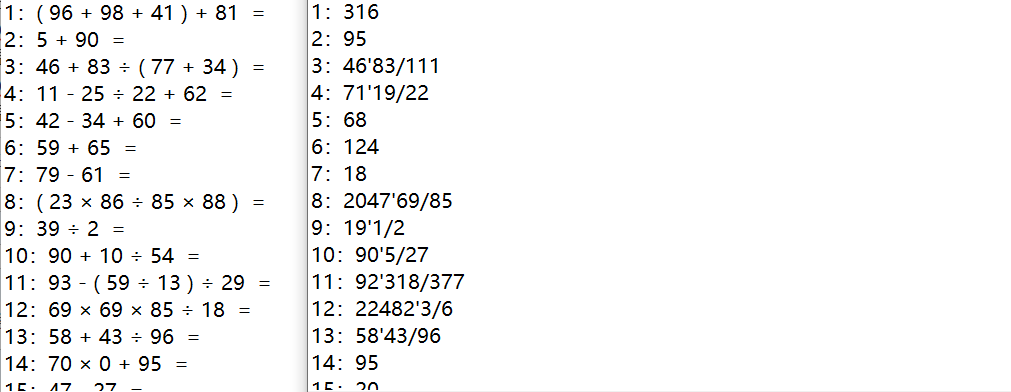 其实计算式子的算法在学习栈的时候就可以尝试做做,比如在leecode里面也有类似的计算算法,但是对于除法的运算,它是截断多余部分只保留整数,与题目保留分数相违背。因此这部分的难点之一在于如何解决分数的计算。