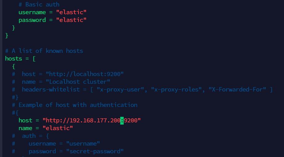 hosts = [ { host = "http://192.168.177.200:9200" name = "es-cluster" } ]