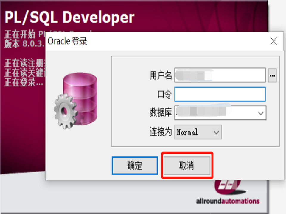 3.打开plsqldev.exe,不进行登陆,直接点击【取消】。