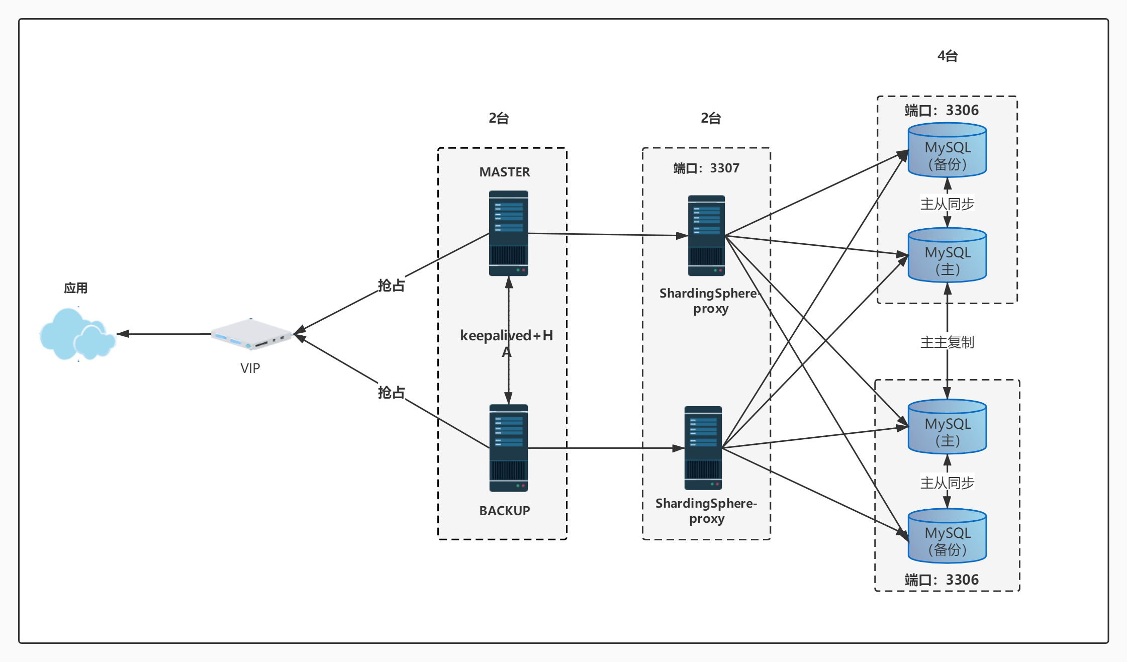 MySql数据库采用主主复制、主从同步架构即两主两从。