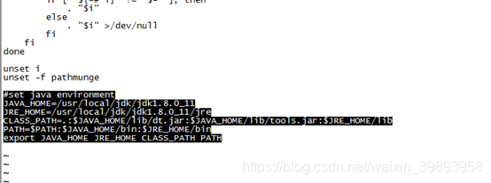 配置jdk环境变量:# vi /etc/profile 在文件的最后一行添加如下内容: