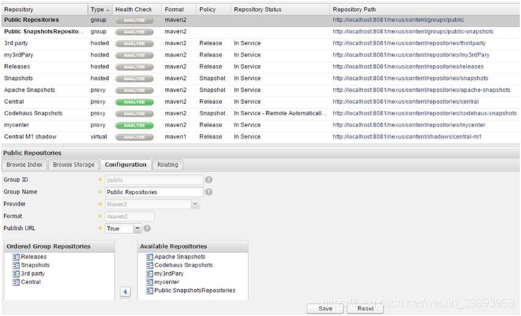 1、Public Repositories,这是一个Repository Group,该Repository Group包含了多个Repository,其中包含了Releases、Snapshots、ThirdParty和Central。