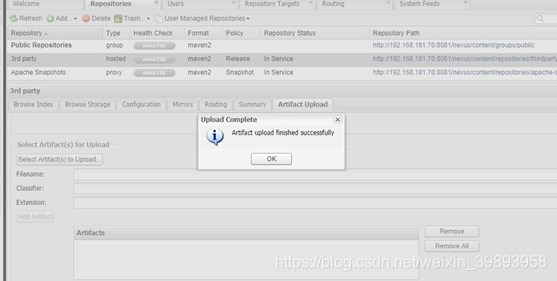 在Repository列表中,选中 3rd party,选中artifact upload,