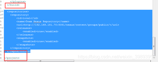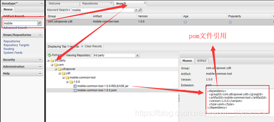 如果要使用nexus中的jar包时需要在pom.xml 中引入如下代码: