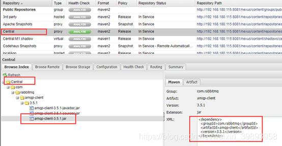 这里可以在nexus的Central中可以看到新下载的jar包。