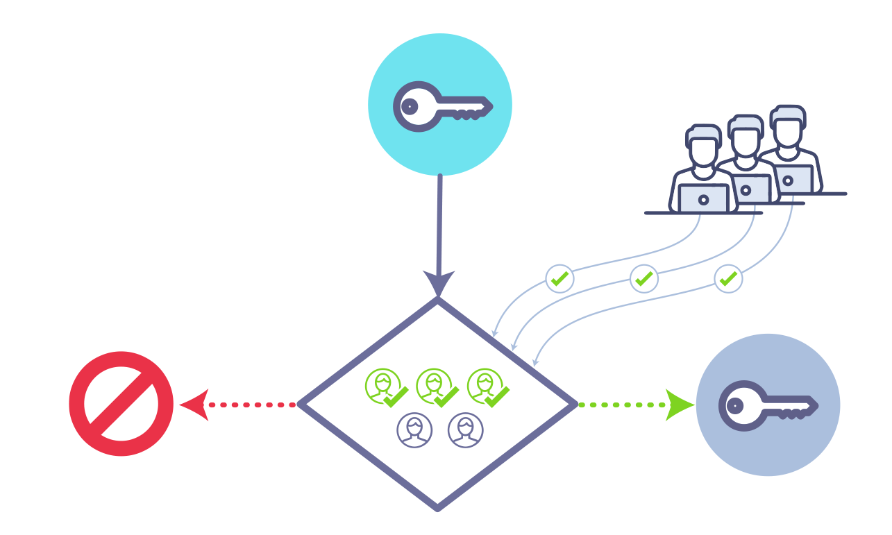 Shamir's Secret Sharing算法被⼴泛应⽤在存储备份,基于SSS的Threshold SSS将某个Secret分成n⽚,并允许⽅中的x⽅( t <= x <= n)重建该Secret。