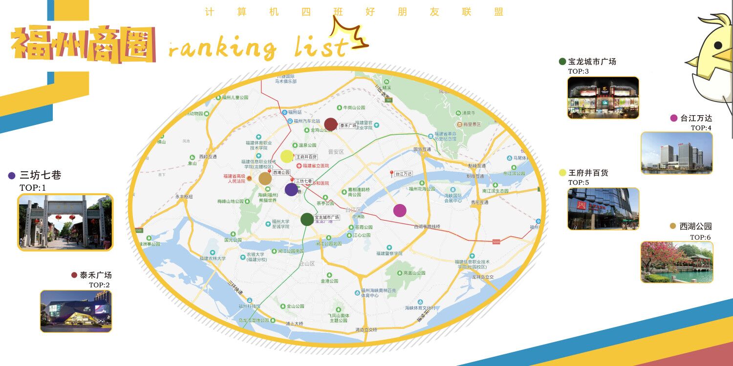 通过访问api解析json数据综合考量评论数量、人均消费水平、评价得分等方面在众多商圈中筛选出不同价格区间性价比最高的美食餐厅、人气最旺的十大商圈、服饰类评分最高的商圈、最佳美食聚集地等。