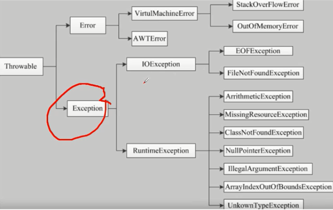 错误(Error):错误不是异常,是脱离程序员控制的问题,错误在代码中通常被忽略,例如,当栈溢出时,一个错误就发生了,错误是在编译时也检查不到的;