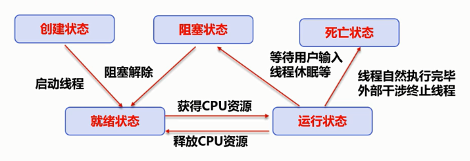 死亡:线程中断或者结束,一旦进入死亡状态,就不能再次启动;