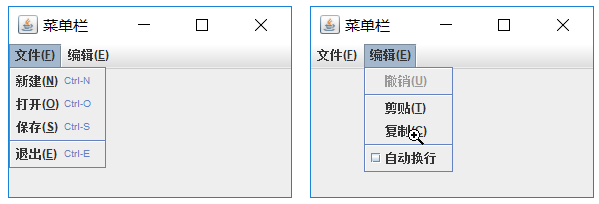 JCheckBoxMenuItem cbMenuItem = new JCheckBoxMenuItem("自动换行");