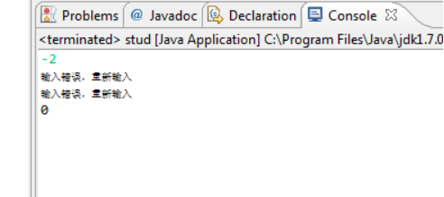package www; import java.util.Scanner; public class stud { /** * @param args */ public static void main(String[] args) { // TODO Auto-generated method stub Scanner input=new Scanner(System.in); int i=input.nextInt(); while (i<0||i>100) { if (i<0||i>100) { System.out.println("输入错误,重新输入"); i++; } } System.out.println(i); } }