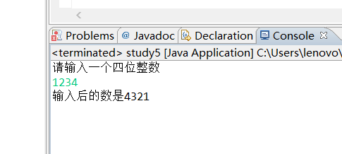 8.由控制台输入一个4位整数,求将该数反转以后的数,如原数为1234,反转后的数位4321(知识点:循环语句、条件语句)